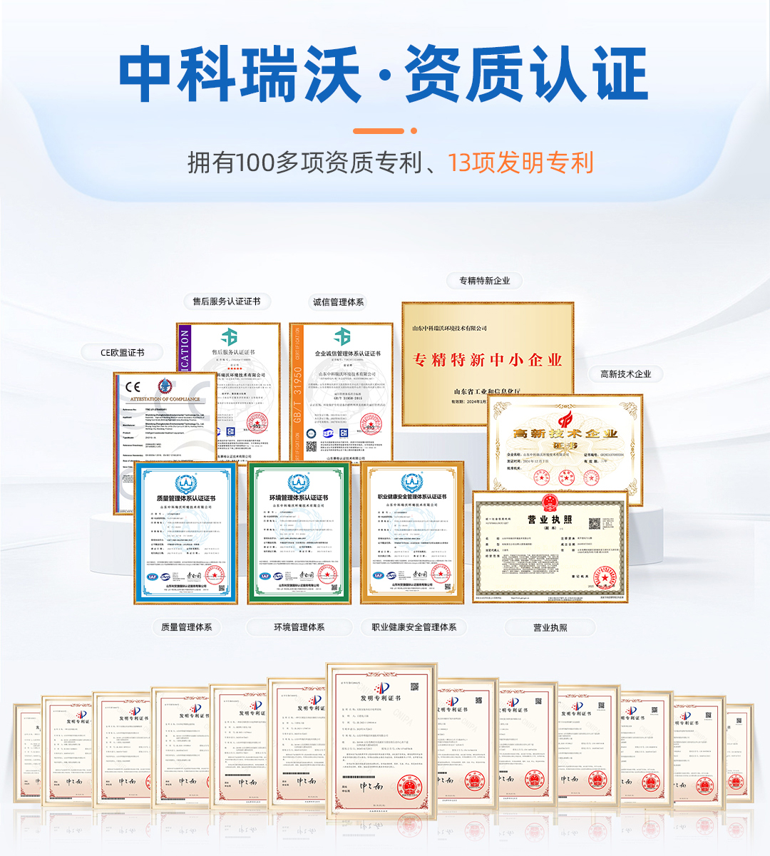 中科瑞沃堅持科技創(chuàng)新,科技研發(fā)實(shí)力強(qiáng),有一支具備豐富一線經(jīng)驗(yàn)的研發(fā)技術(shù)團(tuán)隊,近年來通過100多項國家實(shí)用新型及外觀設(shè)計專利;公司生產(chǎn)基地具備《消毒產(chǎn)品生產(chǎn)企業(yè)衛(wèi)生許可證》,產(chǎn)品均在全國消毒產(chǎn)品網(wǎng)上備案信息服務(wù)平臺備案,而且都經(jīng)過了第三方正規(guī)檢驗(yàn)機(jī)構(gòu)的檢測及歐盟CE認(rèn)證,符合國家標(biāo)準(zhǔn)及國際標(biāo)準(zhǔn),通過了ISO質(zhì)量體系、環(huán)境管理體系、職業(yè)健康安全體系等多項認(rèn)證。體現(xiàn)了公司在生產(chǎn)、管理、銷售和服務(wù)等各個環(huán)節(jié)規(guī)范化和體系化。并在2024年通過了國家高新技術(shù)企業(yè)認(rèn)證,這標(biāo)志著公司在研發(fā)和創(chuàng)新方面得到國家相關(guān)部門的肯定與認(rèn)可。