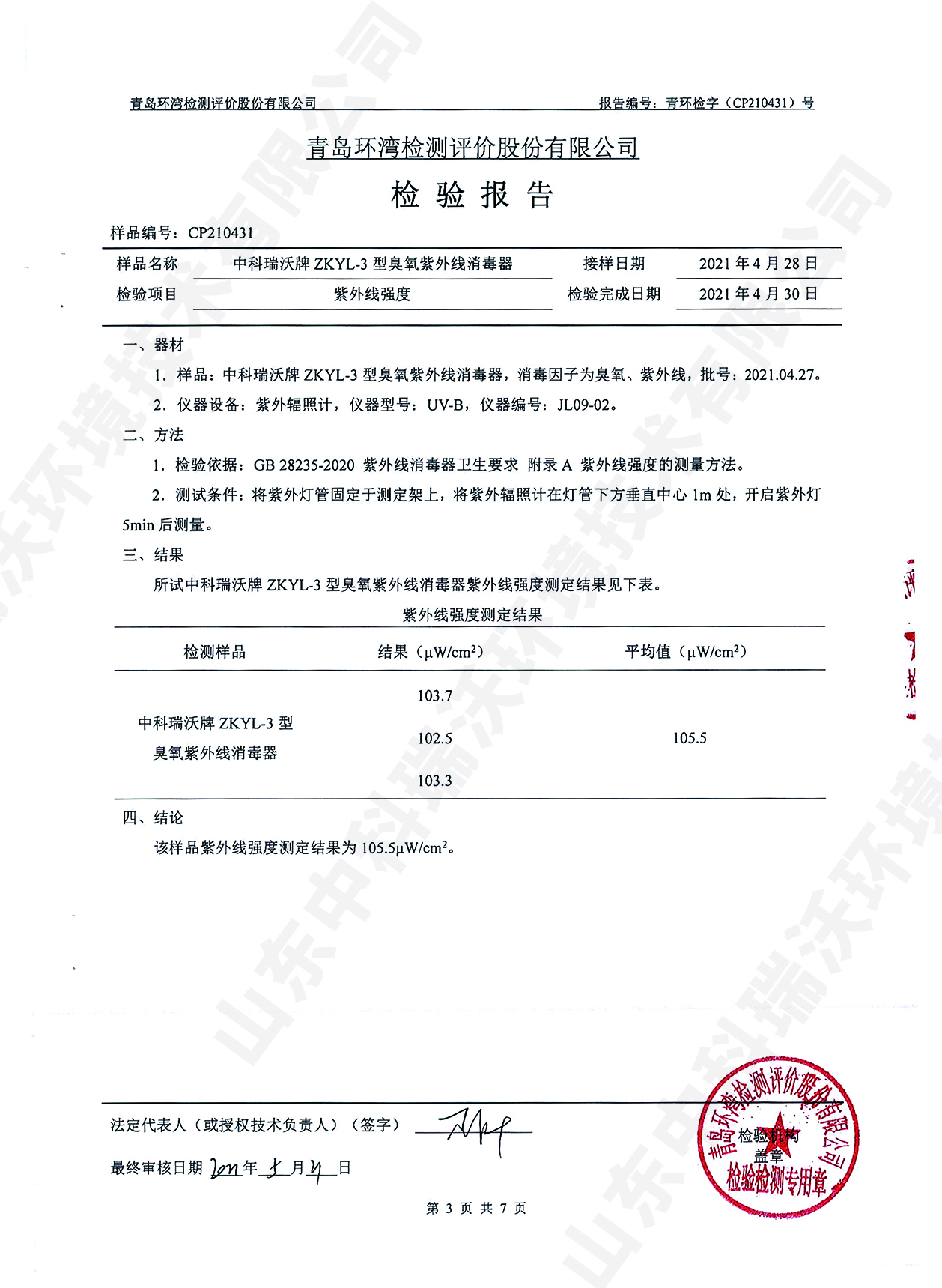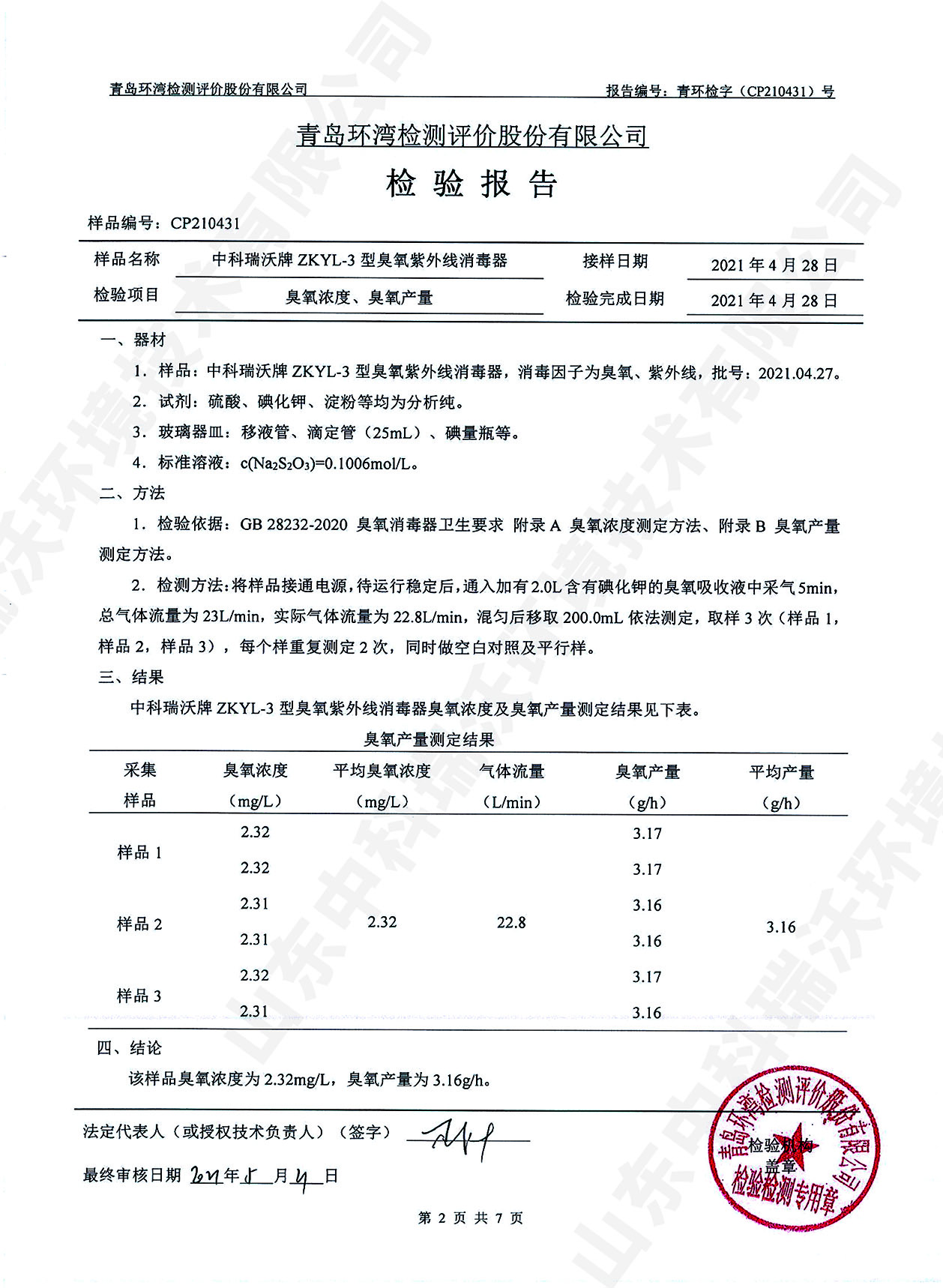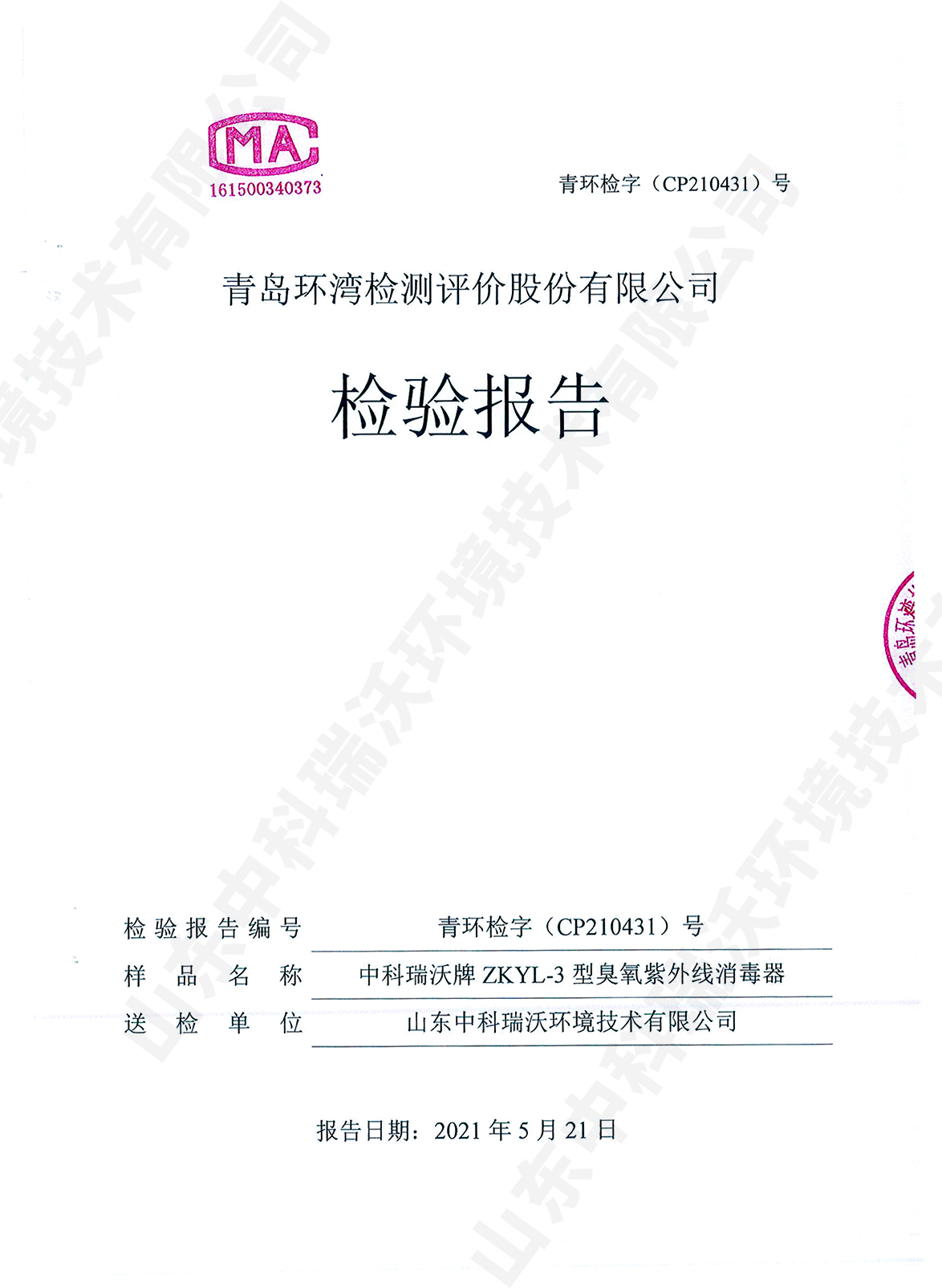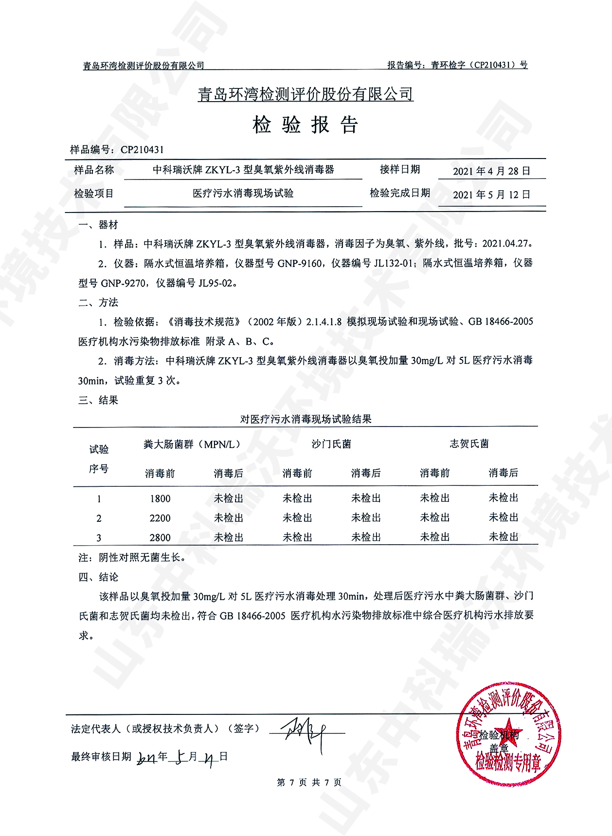 醫(yī)療污水處理設備檢測報告~臭氧消毒