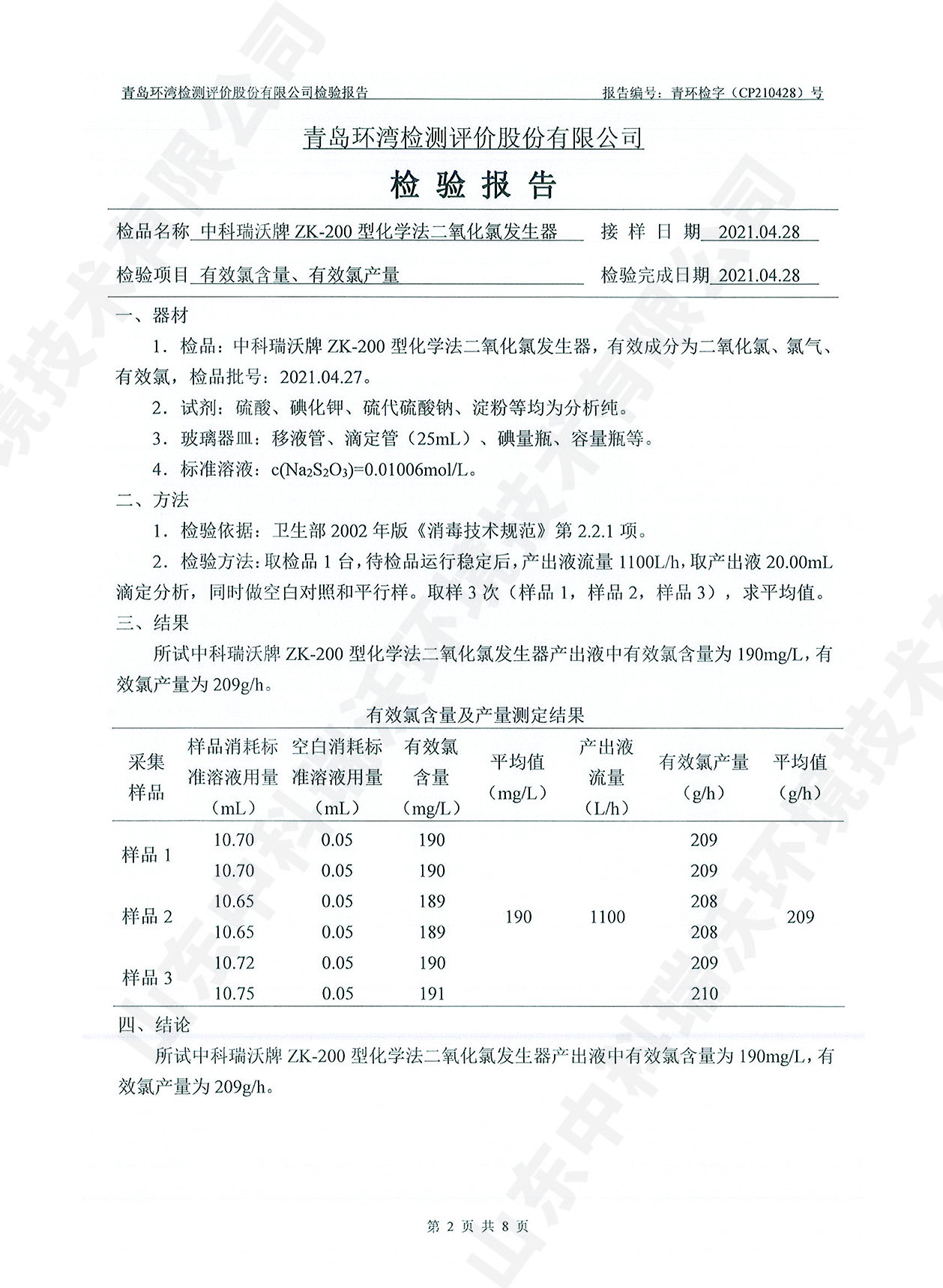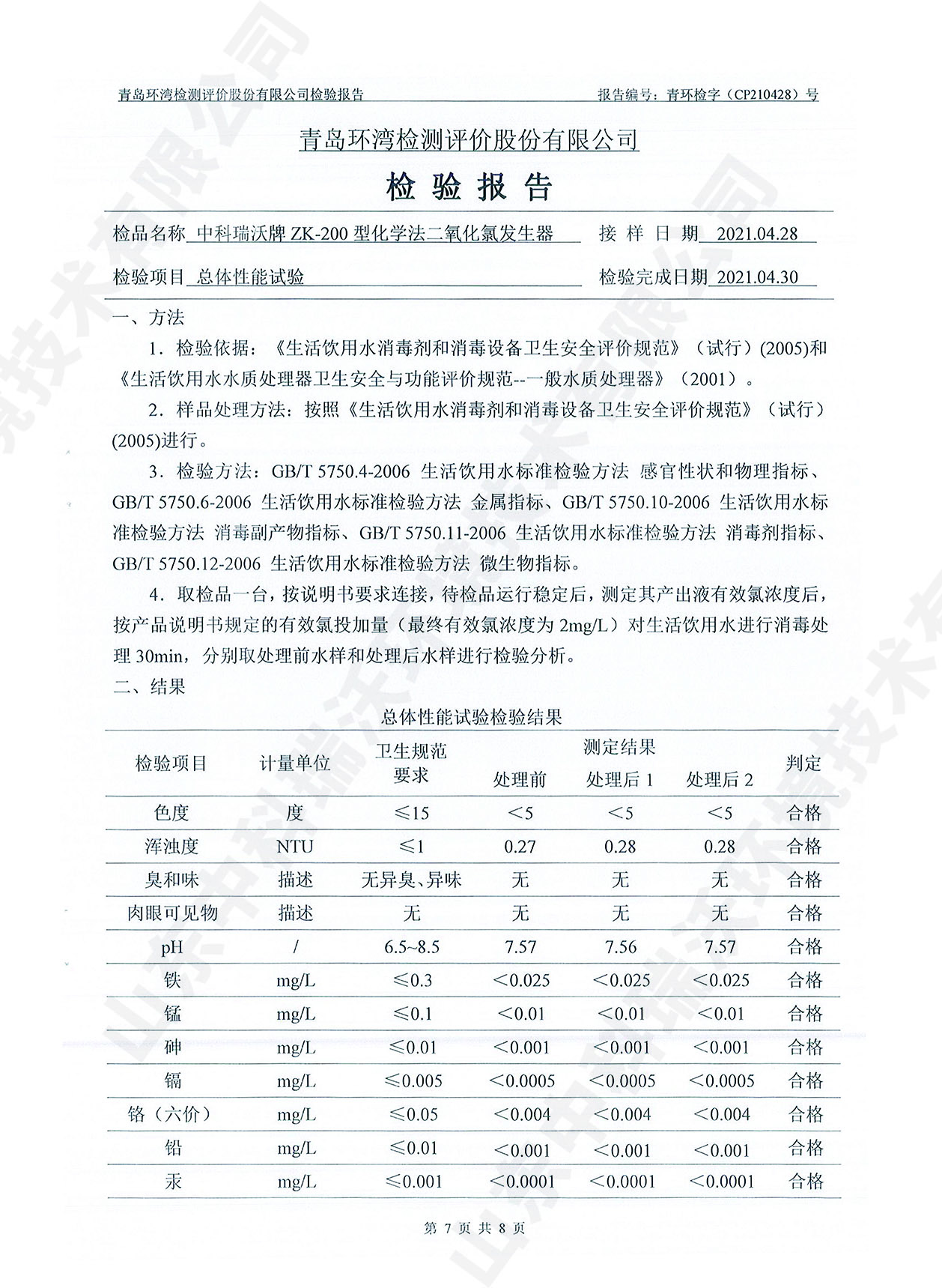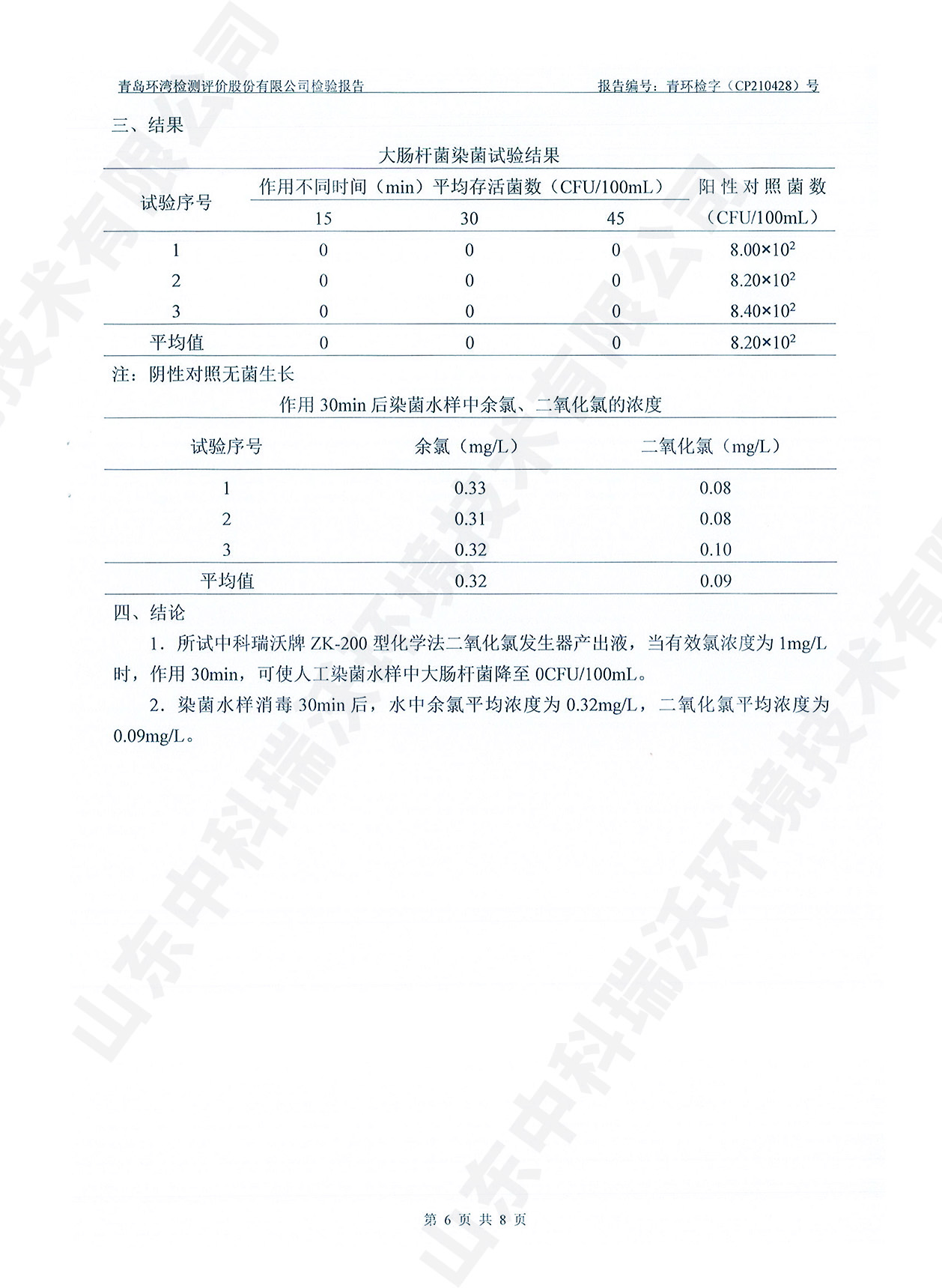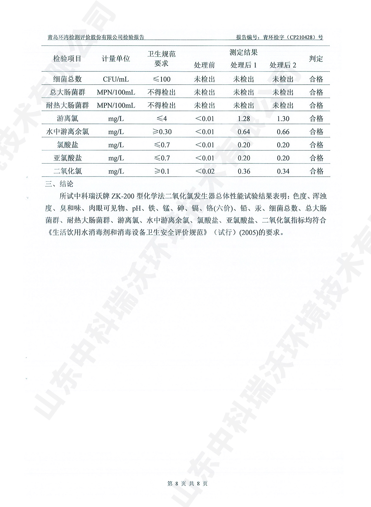 飲水消毒設(shè)備檢測報告~二氧化氯消毒