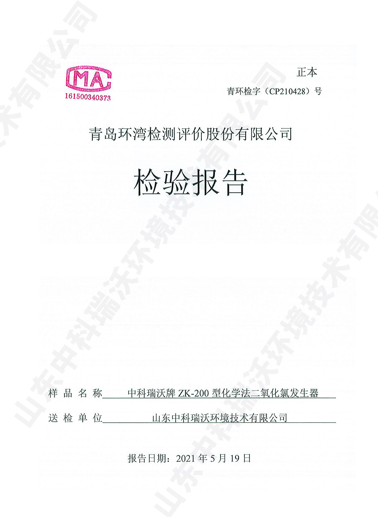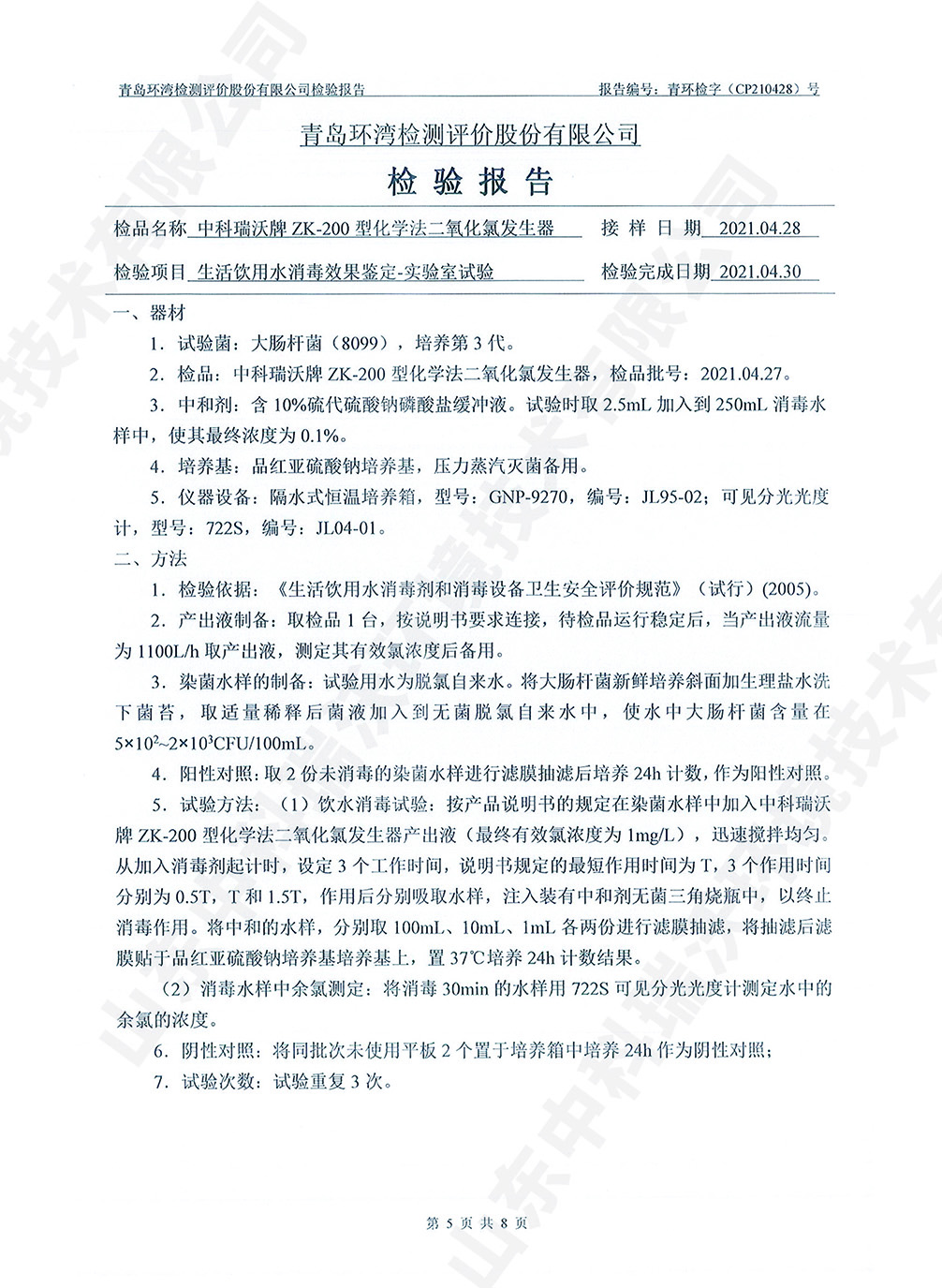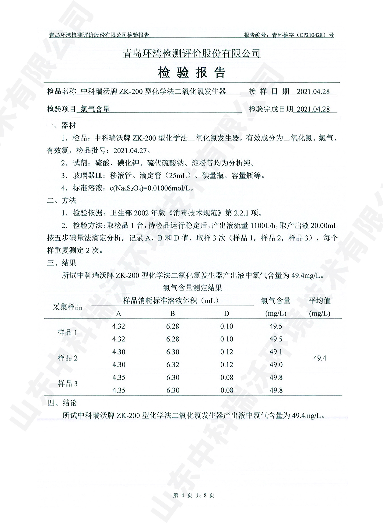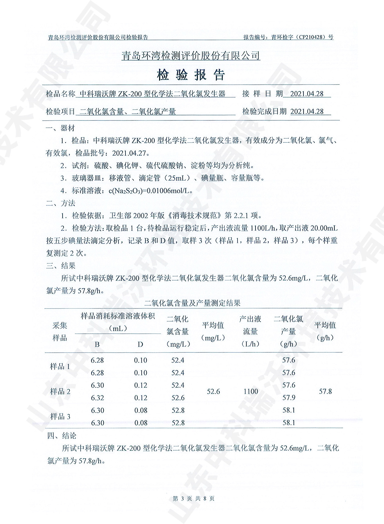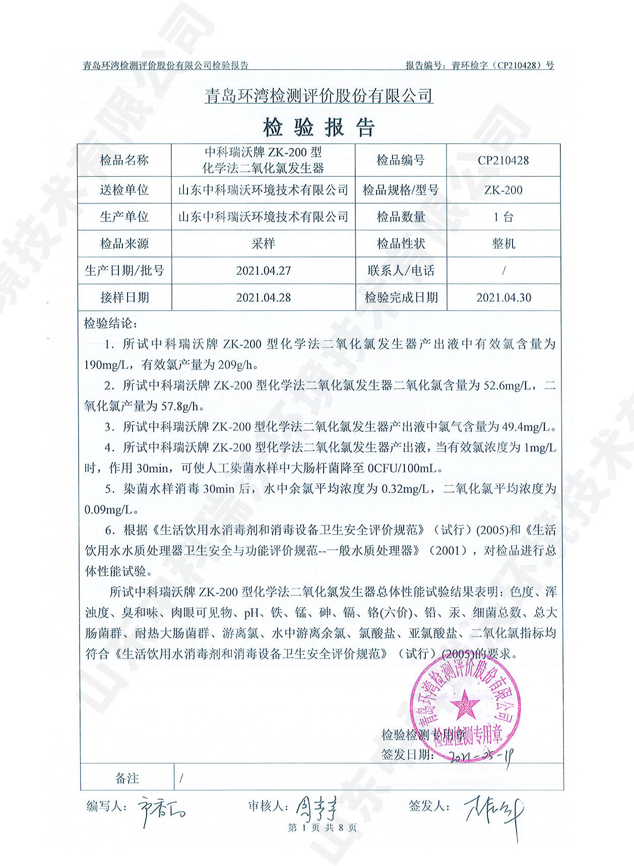 飲水消毒設(shè)備檢測報告~二氧化氯消毒